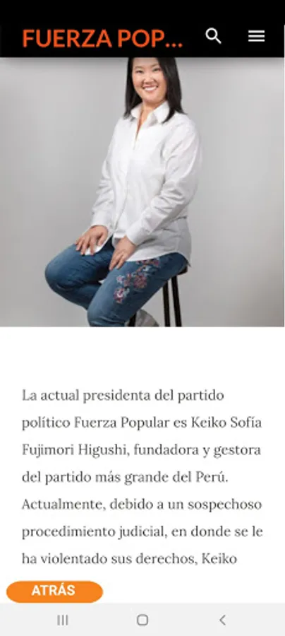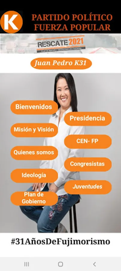 This application contains information on the Popular Force Party and the candidate for Congress for Lima, Juan Pedro Sánchez Carrillo K31