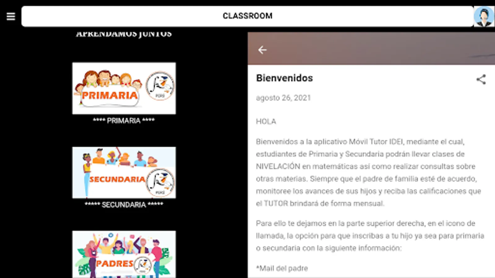 Tutor IDEI is an application that supports the leveling of primary and secondary students in mathematics and other subjects