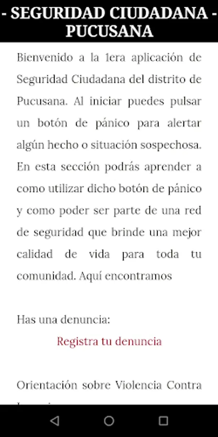Through this application you can alert of a robbery, violence or any suspicious activity. You can also provide guidance to those who do not know how to report or ask for help.