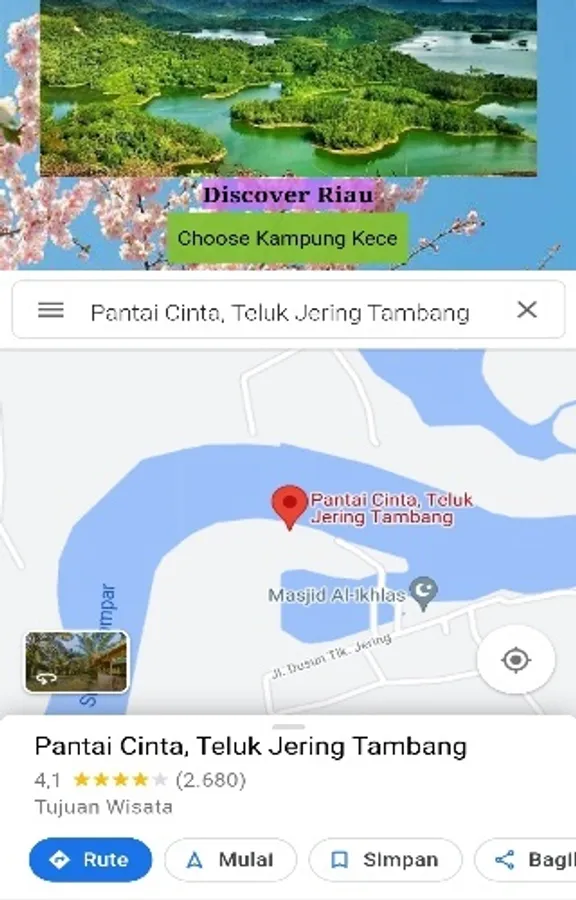 This application can display a map to tourist attractions in Kampar Regency, namely Ulu Kasok and Pantai Cinta