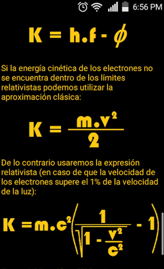 The application determines whether photoelectric effect occurs and if so the values of the kinetic energy of the emitted electrons and the speed reached is.