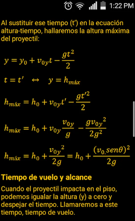 It also allows us to study the height and time while flying, and the maximum height, the flight time, the full extent of the projectile and the final velocity at impact.