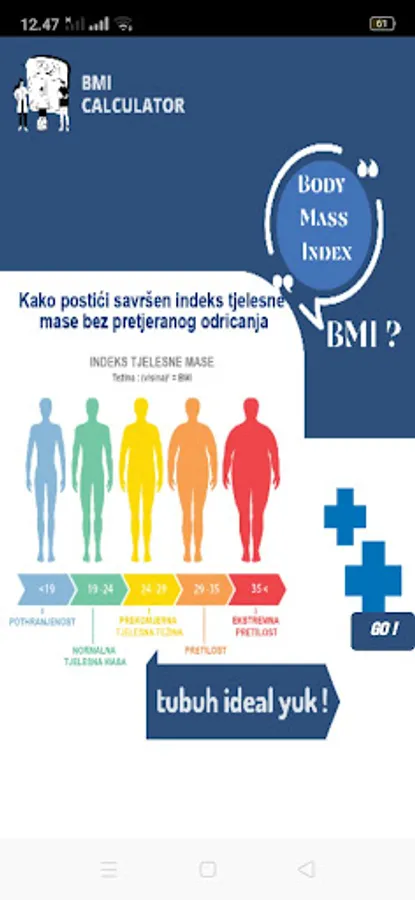 This application was created so that you can find out whether your weight status is normal, lacking, or excessive which could be associated with the risk of certain health problems. Don't forget to always pay attention to food intake so that your weight status remains in normal condition