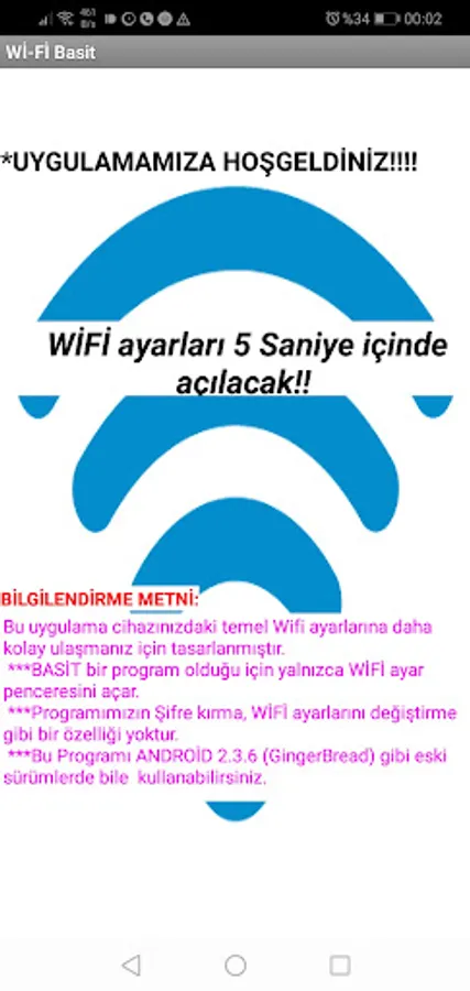 With this application, the WiFi settings are automatically opened after the application is opened.