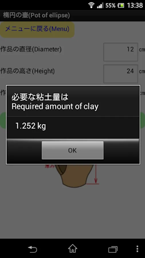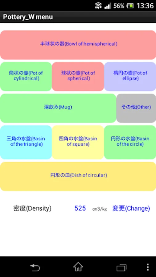 If the density of the clay is different from the 525cm3 / kg, Please update with change button to change the value of the menu screen under.