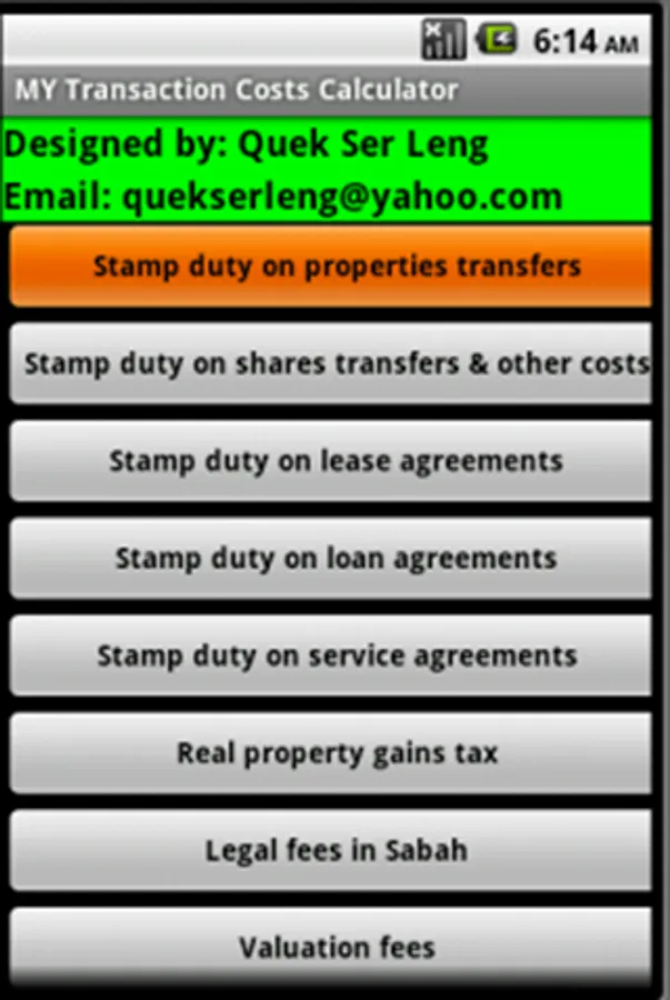 This calculator app is used to calculate various transaction costs in Malaysia such as: