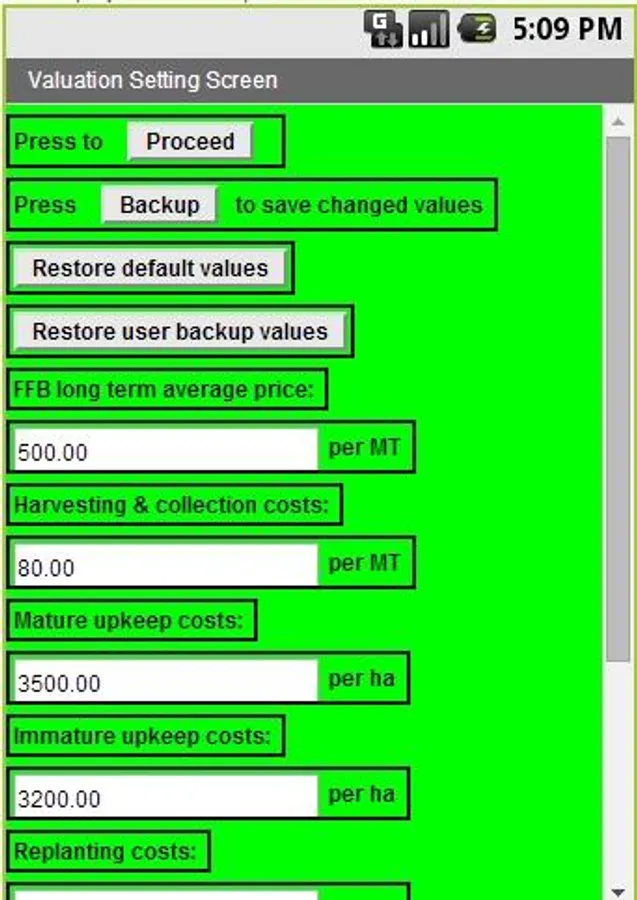 This app is also useful to determine the fair value of biological assets in relation to oil palm trees based on discounted cashflow method in accordance to IAS 41 Agriculture Standard by setting the vacant land value to 0.