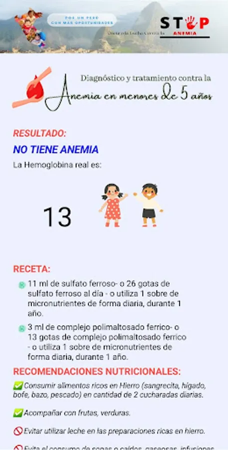 StopAnemia is an application for professional use designed to combat anemia in children, adolescents and pregnant women. Optimize your diagnosis and treatment times against anemia.