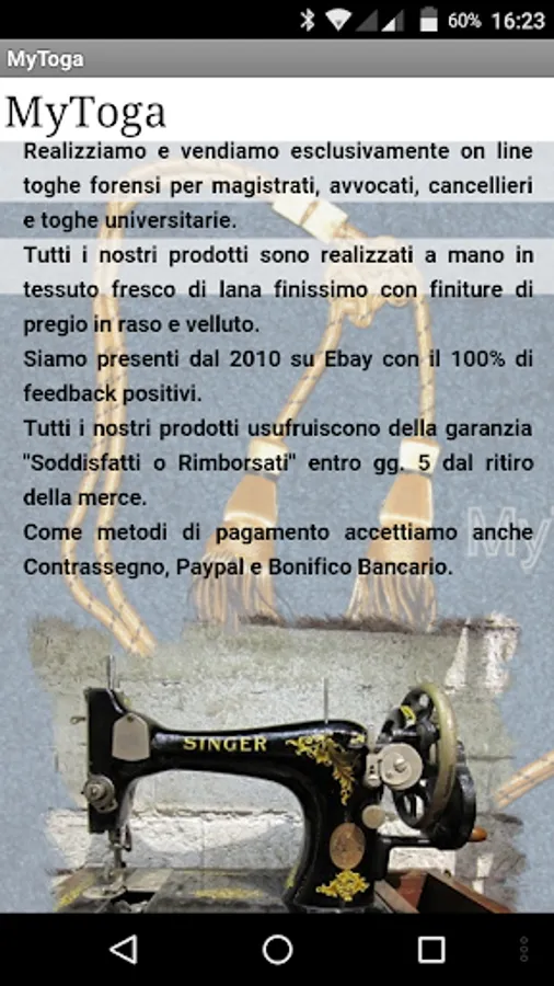 You're a lawyer, a magistrate or a university professor and needs a Toga? The App provides quick access to the main functions of the site MyToga to purchase Toghe Forensic and Academic handcrafted and Made in Italy.