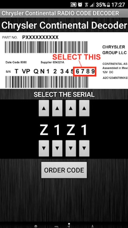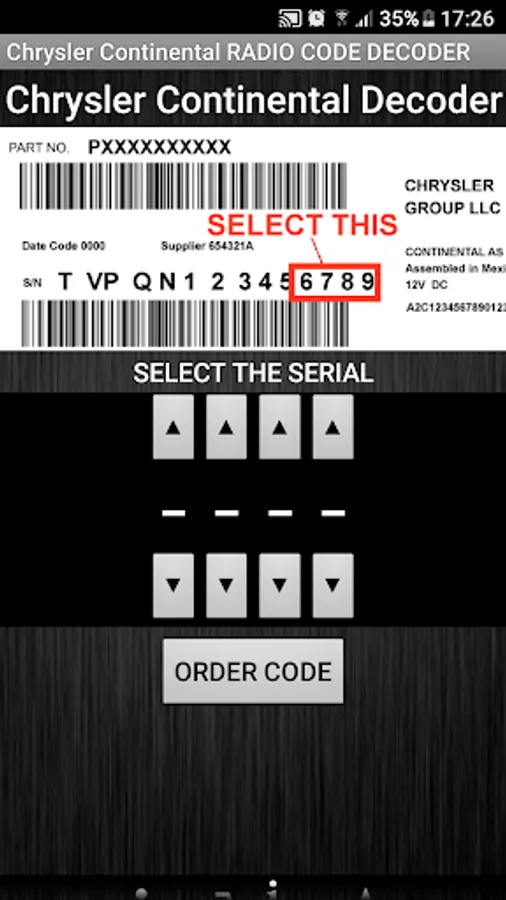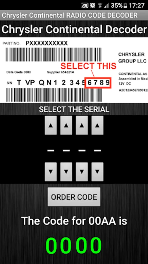 Chrysler Continental Radio Code Decoder for Serial TVPQN... and TQN...