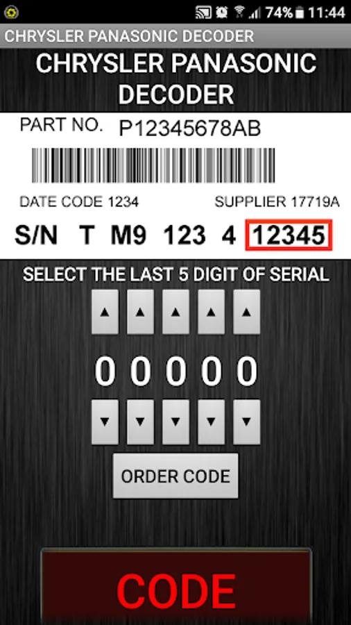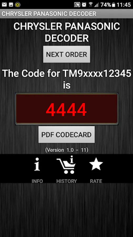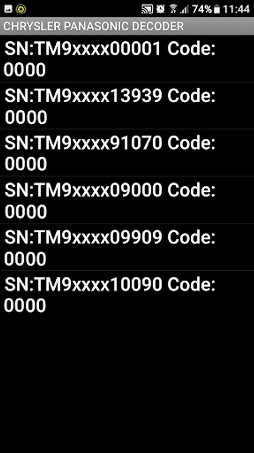 Chrysler Panasonic radio code decoder for serial number T M9......