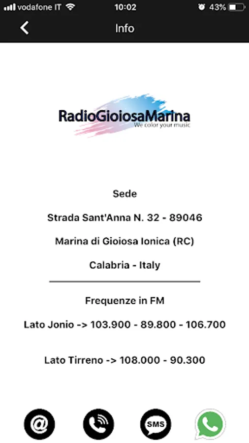 We present the Radio Gioiosa Marina's official app for Android devices. You can listen to our live radio streaming wherever you are and discover the special RGM's chart (Rgm Hits Chart, Rgm Hits Chart Rock Edition, Rgm Hip Hop Chart, Rgm Dance Chart). You can also go to Facebook section, where there is our official facebook page. App has a several section about our Audio / Lights Service and in the info section you can discover our main contacts and ways to talk to us.