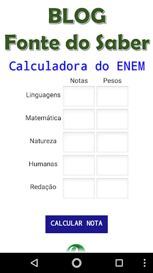 Simple calculator for calculating the note of Enem in major universities in Brazil!