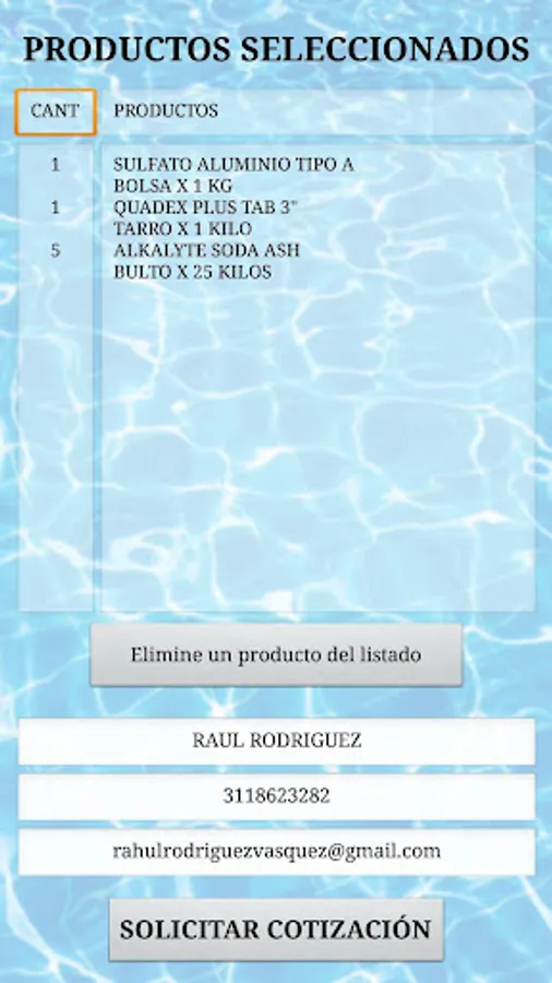 Support application for customers through which product quotes can be requested and product quantities calculated according to related parameters.