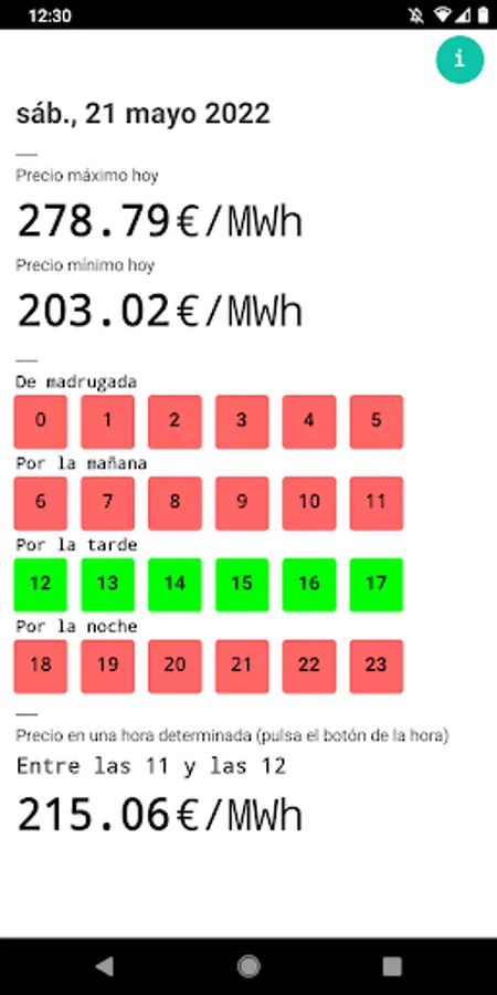 A simple application that will allow you to have today's electricity price at hand. In this way you can program the activity of the appliances that consume the most energy (dryer, washing machine).