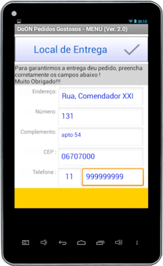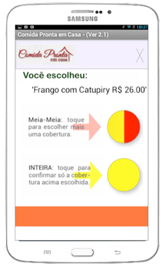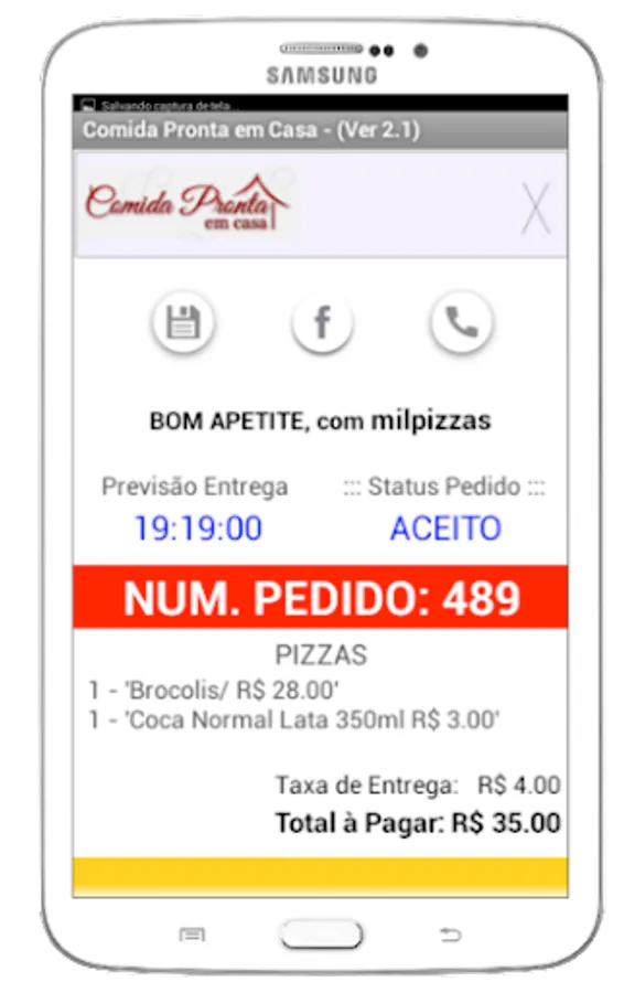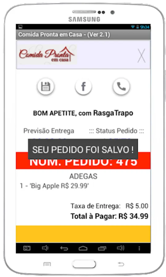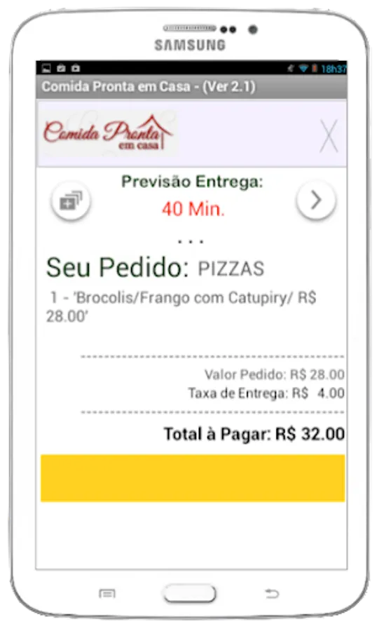 FEATURES: The features available on the Ready Home follow a new paradigm to ask delivery. Offering greater speed and ease of use, Ready to Eat at Home was built using features and functionality of Doon platform / Android, so it was not adapting an Internet application / WEB.