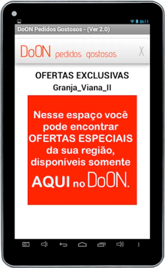 FUNCTIONALITY: Written specifically in the Android development platform, the Doon uses, in all its fullness, the features and functionality of this platform and can be used on Smartphones, TV or devices that have Android as OS. Consumers can access the menus with meals and food values, rate and delivery time, promotions and offers in the region, among other features.