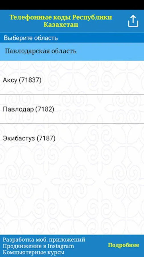 Телефонные коды Республики Каз Screenshots