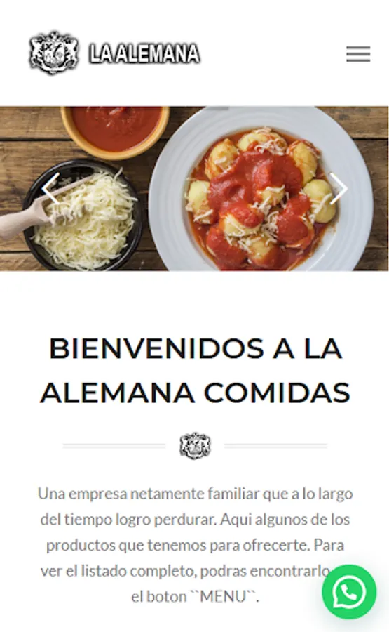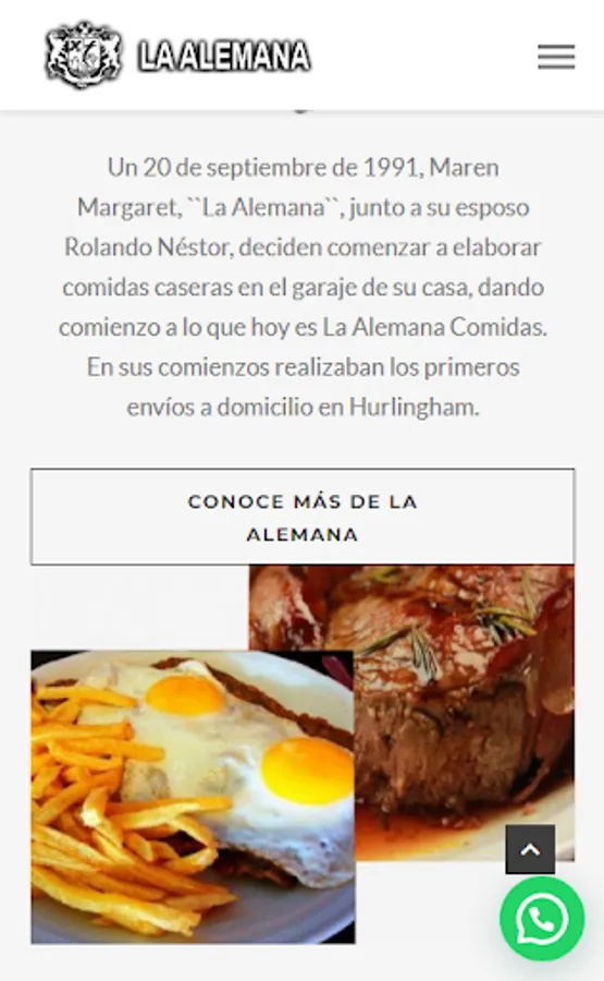 On September 20, 1991, Maren Margaret "La Alemana" with her husband Rolando Néstor decided to start preparing homemade meals in their garage, starting what is now La Alemana Comidas, who in the beginning made the first Home delivery in hurlingham, both by bicycle and by bus. A purely family business that over time managed to endure, maintaining the right balance combined with good quality in its products, good and friendly service and always reasonable prices. We are happy with the great recognition of the people in the district where we serve companies, homes, businesses, public entities among others with an active portfolio of more than 2000 clients. We live moving forward since we recognize our mistakes and try to modify them, not being a coincidence our almost 30 years in the market working tirelessly to improve our products and services.