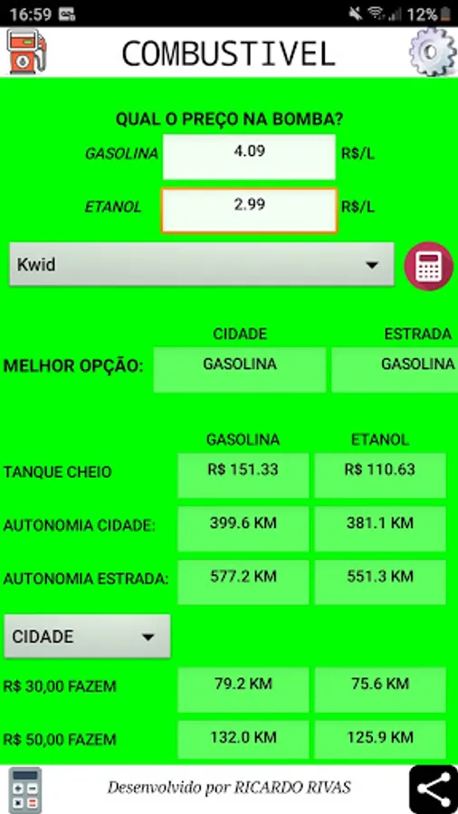 CALCULATE THE BEST COST BENEFIT BETWEEN GASOLINE AND ETHANOL
