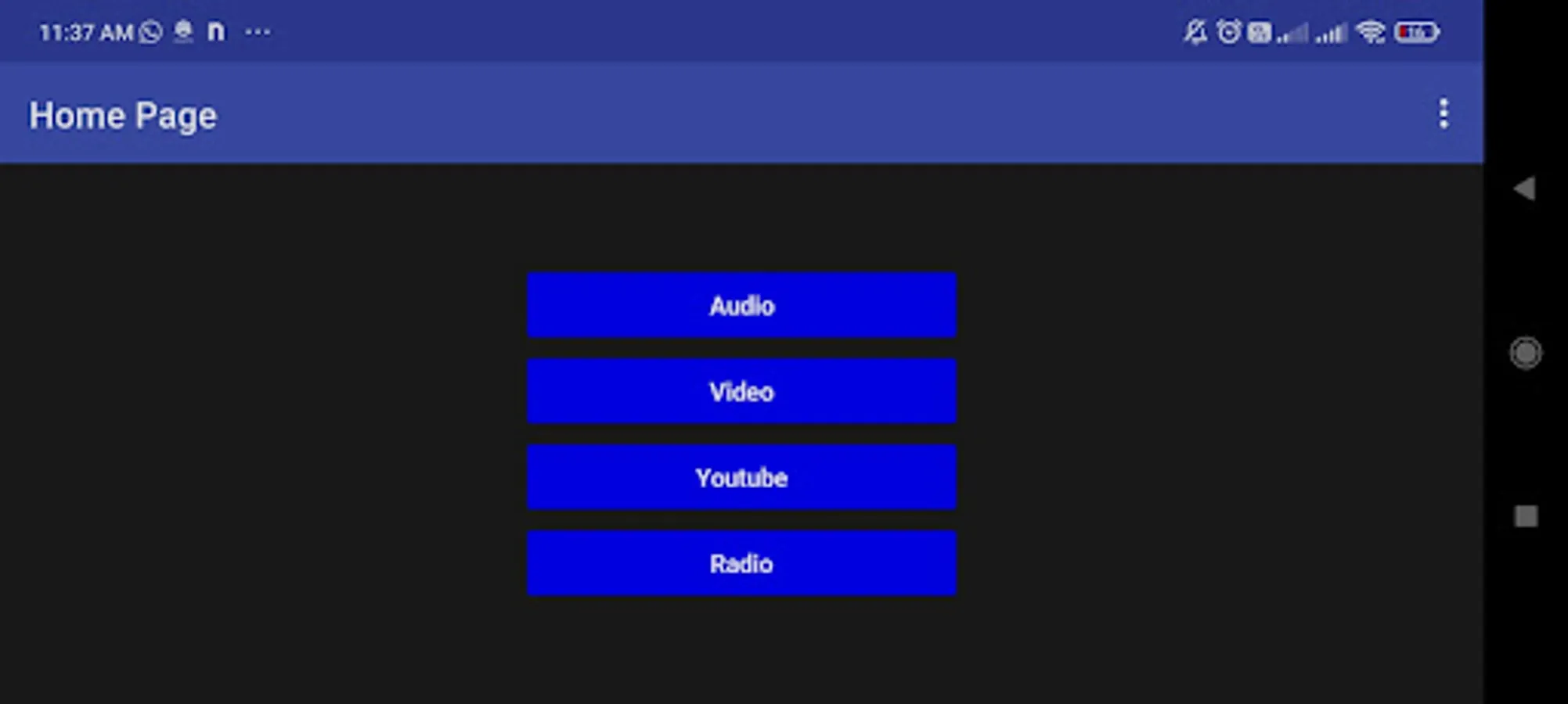 Entertainment application that provides audio player, video player, radio, and youtube in one application.