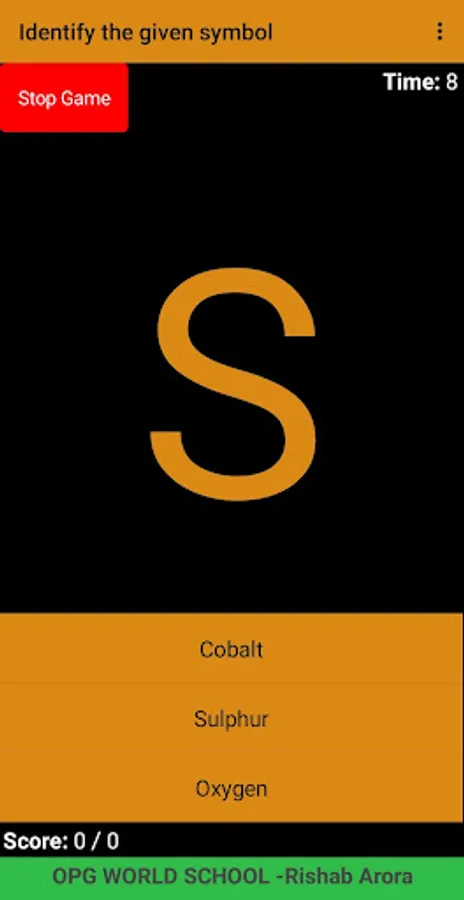 ★ Chemical symbol is displayed for 10 seconds, user has to answer the chemical name.
