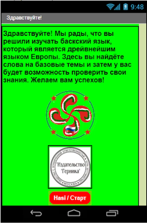 Each word is accompanied by audio, text and Russian translation. There are ten groups of words to help you learn Basque.