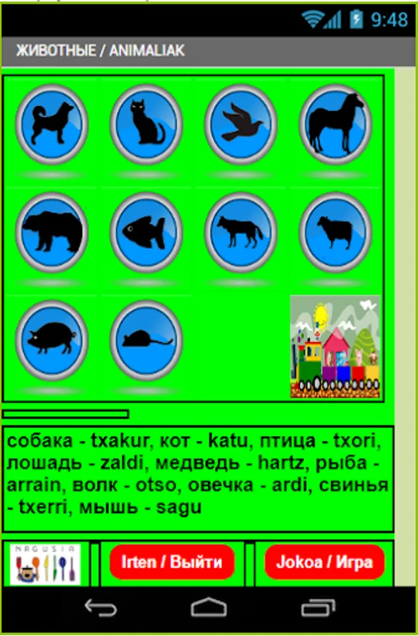Along with each group of words you will find a fragment of the song. We hope that you will like this application and will be the first step in learning Basque.