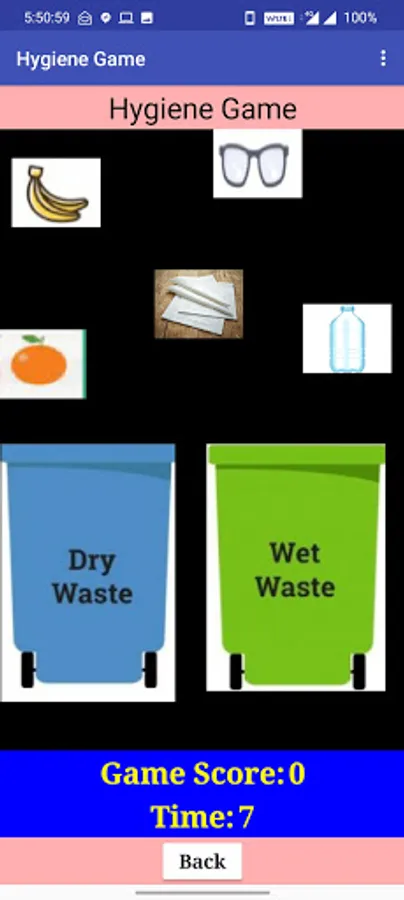 There will be two dustbins WET WASTE & DRY WASTE and five objects. You have to drag the correct object to the right dustbin, and you will get 10 points each Total points are 50. This is a small effort to make everyone understand that we as responsible citizens should dispose of waste in the right manner so as to maintain proper hygiene
