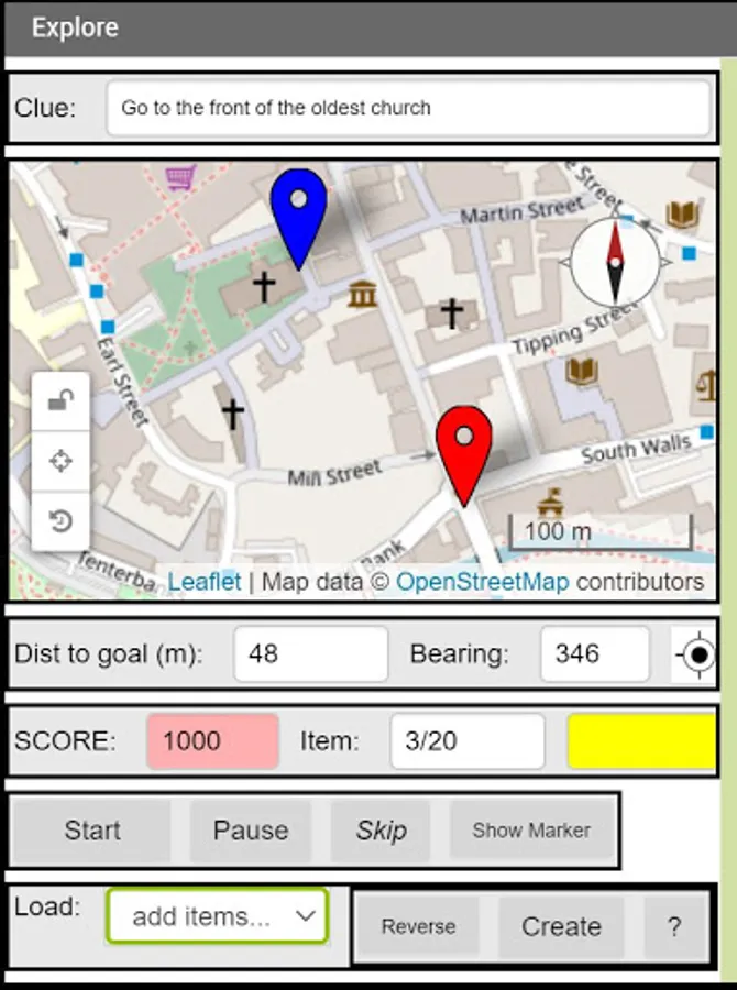 The explorer follows each waypoint from the clues, the bearing and distance, and using the location if visible. As each waypoint is reached, the score increases due to the time remaining. The clues can also give useful 'guidebook' type of information.
