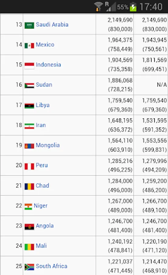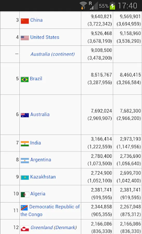Also included all countries flags and the list of the largest and the smallest countries in the world by area on Wikipedia site.