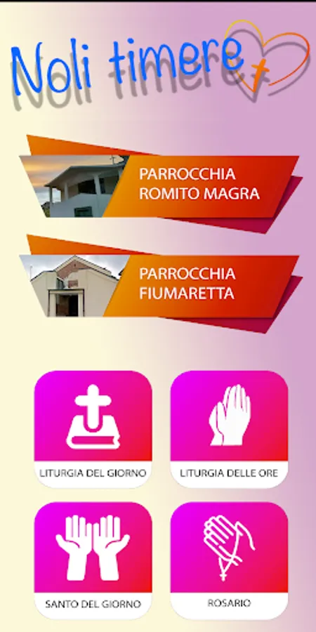 "Noli timere" (Don't be afraid). Application to accompany personal prayer and to be updated on the events and initiatives of the parishes of Romito Magra and Fiumaretta.