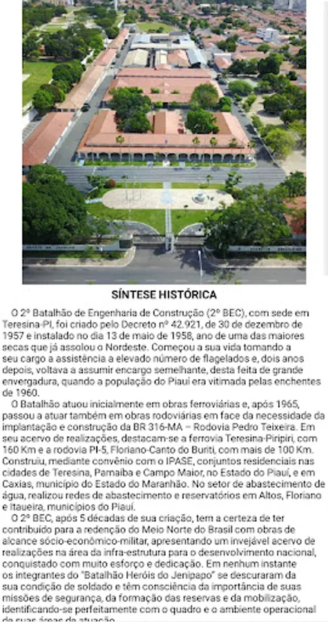 Application designed to provide relevant information and present the 2nd Construction Engineering Battalion, its mission, composition, news, works and other useful information for those who already know or want to know more about the 2nd BEC.