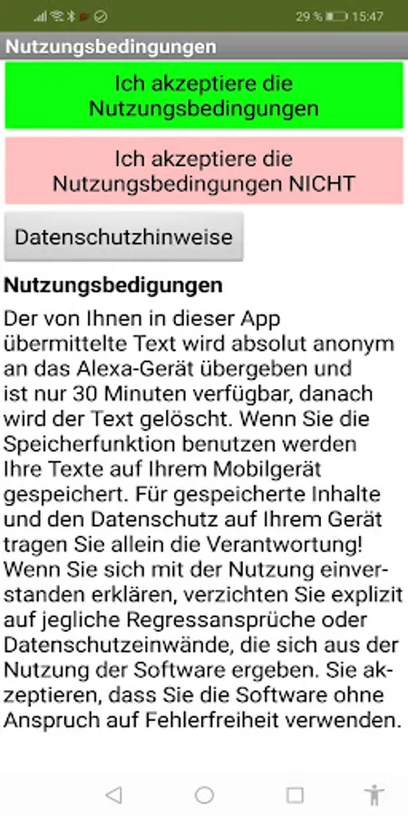 The connection and all entered data can be completely deleted in the app at the push of a button.