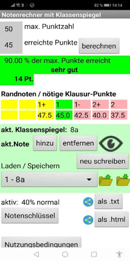 That is the end of it: Generate individually adjustable class mirrors at the push of a button and then calculate again the percentage of points achieved and the corresponding grade with just one push of a button. With another click, you enter the grade in the class index.