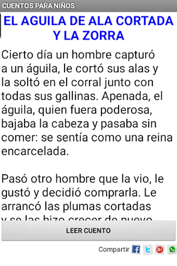 Our application is oriented so that they can practice their reading in a fun way, we will continually increase children's stories and children's fables that in addition to facilitating the practice of reading can give examples of behavior and thus be able to educate in a better way.