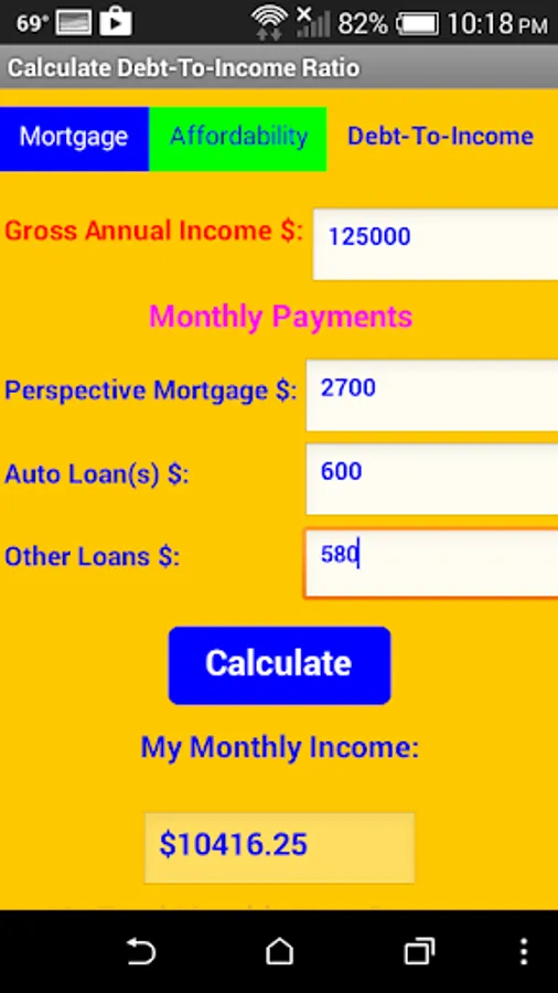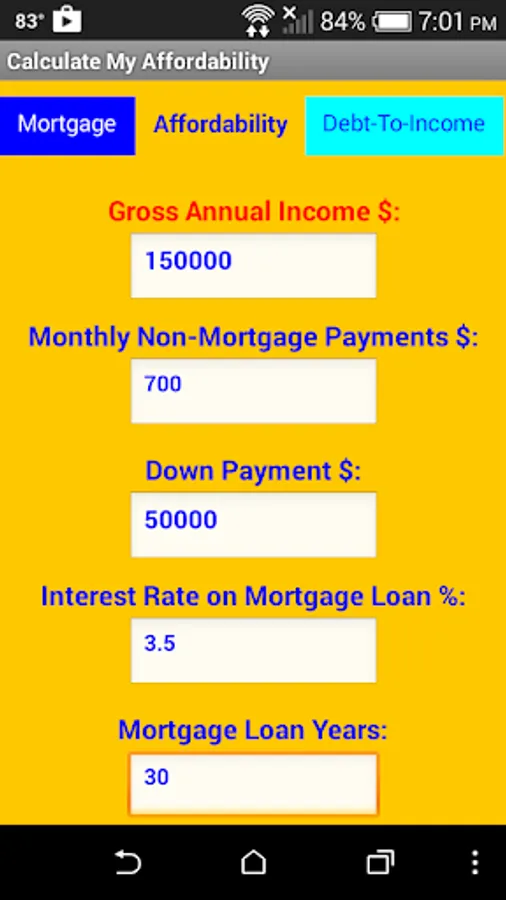 My Mortgage Calculator app is designed to calculate monthly mortgage home affordability and debt-to-income ratio for new home buyers. It will provide you a basic idea about mortgage before buying a dream home. This app is completely free and comes without advertisements.
