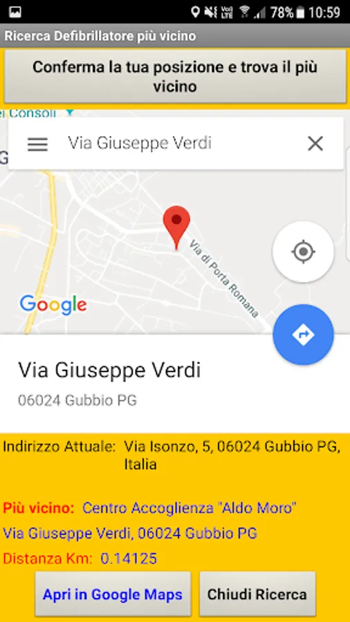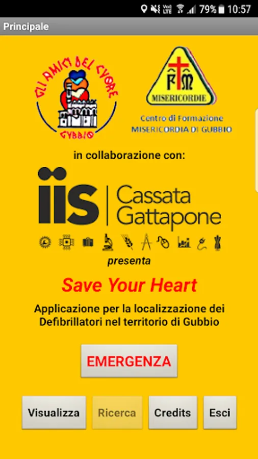 The application, created by the Friends of the Heart - Gubbio (PG) by the pupils of 4th class B dell'Indirizzo Technical Economic Information Systems articulation a.s. 2016/2017 Institute "Cassata - Gattapone" Gubbio under the supervision of Profs. Roberto Rossi and Giuseppe Labita, allows the location of defibrillators on the territory of Gubbio (PG).