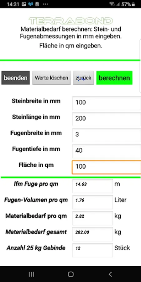 By entering stone and joint dimensions, this app calculates the material requirements for TERRABOND hybrid paving joint.