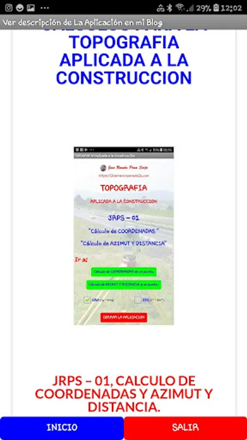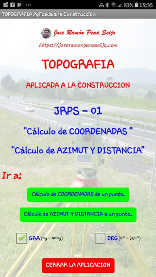 • From below and with the same format we have the button to access the calculation of Azimut, horizontal distance and slope between two known points.