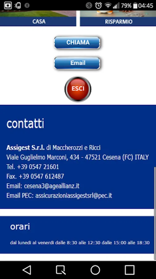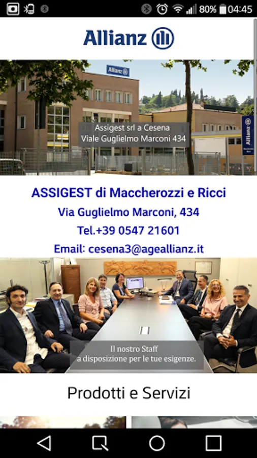 Presentation application Assigest an Allianz Insurance Agency in Cesena, you can find the contacts and the various services offered