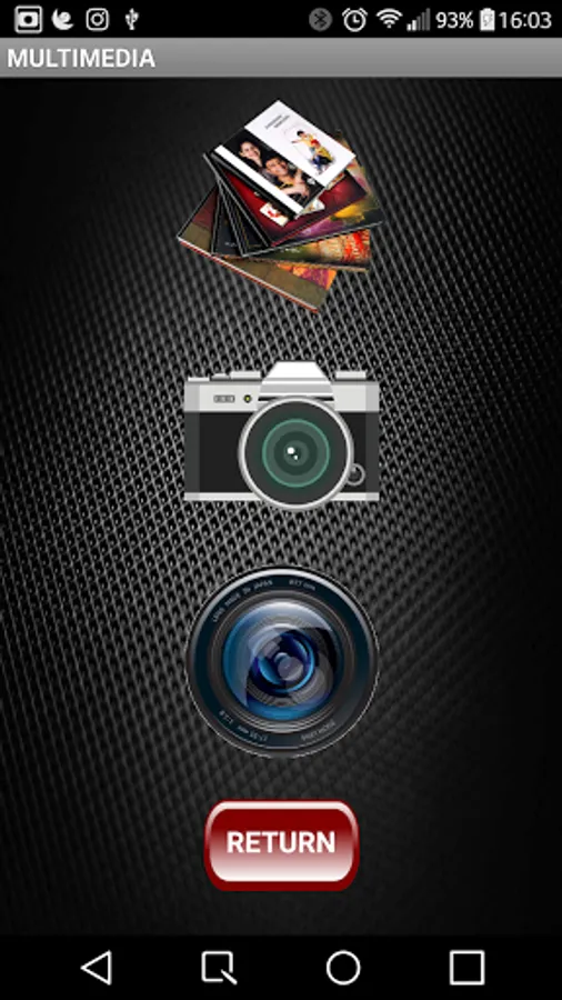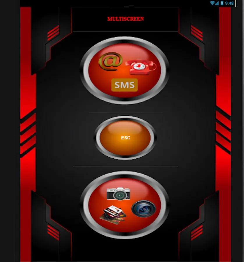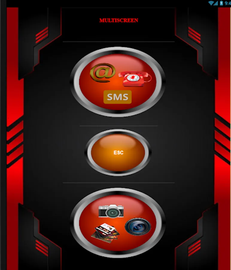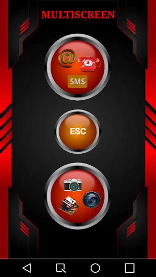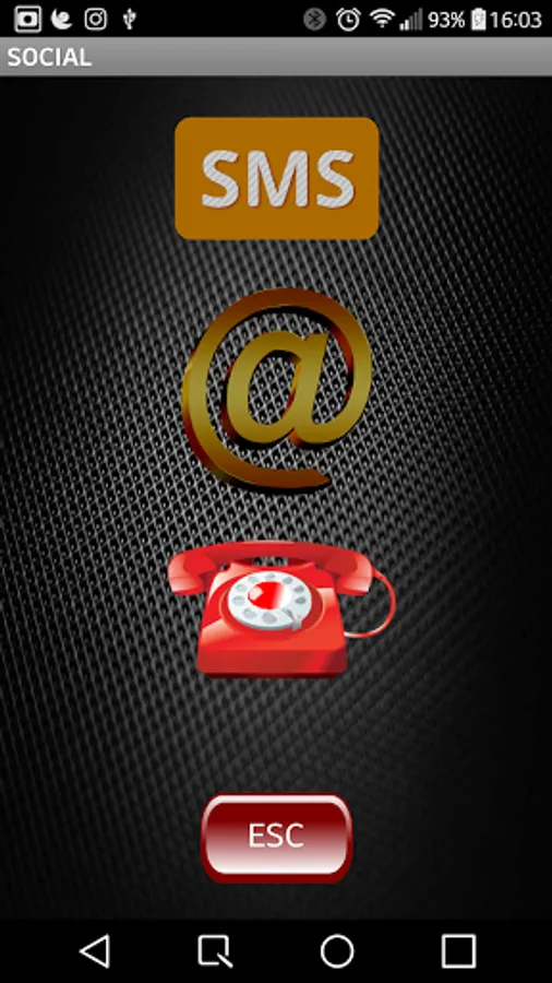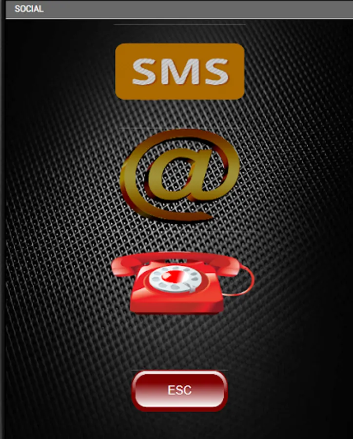 Main screen with three button MEDIA, button SOCIAL and ESC to exit, from the first two you access the relative menus to access the media functions of the phone or social.