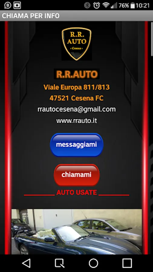 You can see cars for sale with the possibility of calling for more information, sending emails, also by clicking on the photos Cars you access the next screen with other photos and details