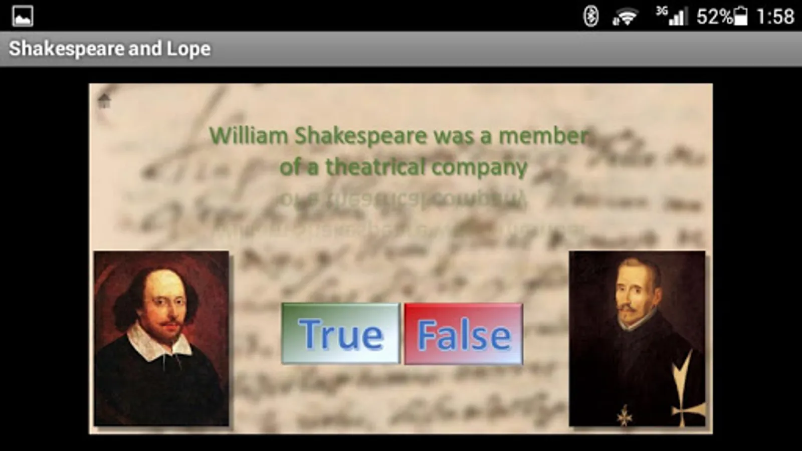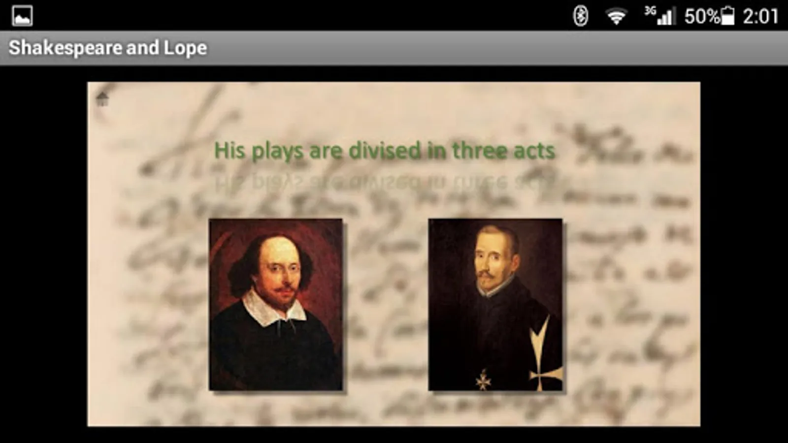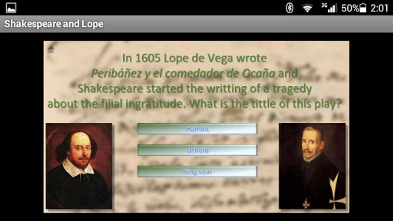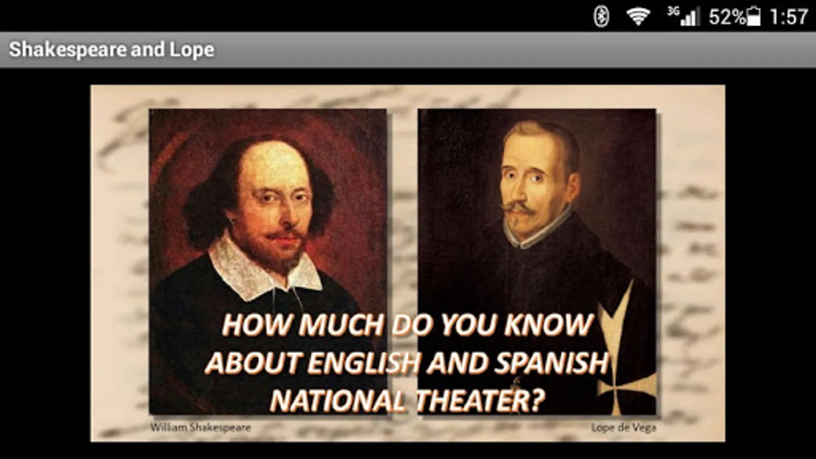 Interactive game of questions and answers about the life, work and times of Shakespeare and Lope de Vega.