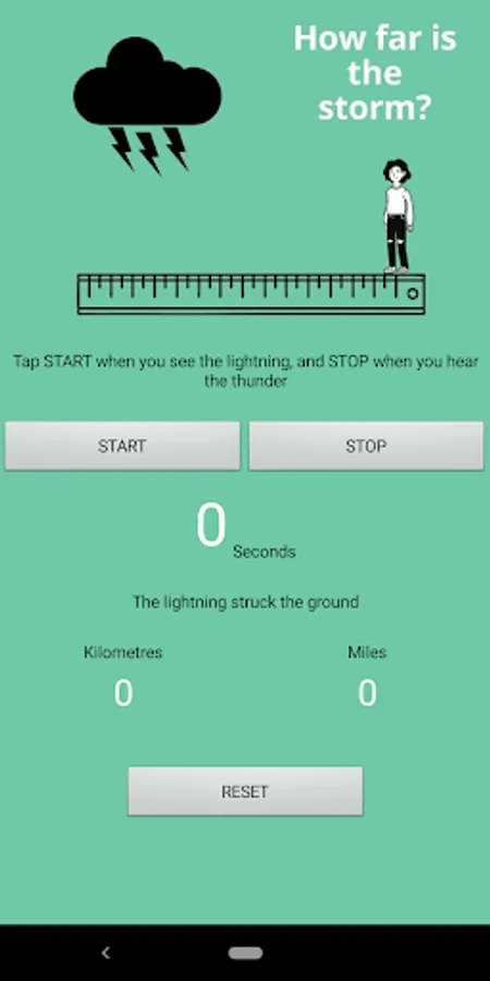 It is very simple. Tap the START button when you see the lightning and then touch STOP when you hear the thunder.