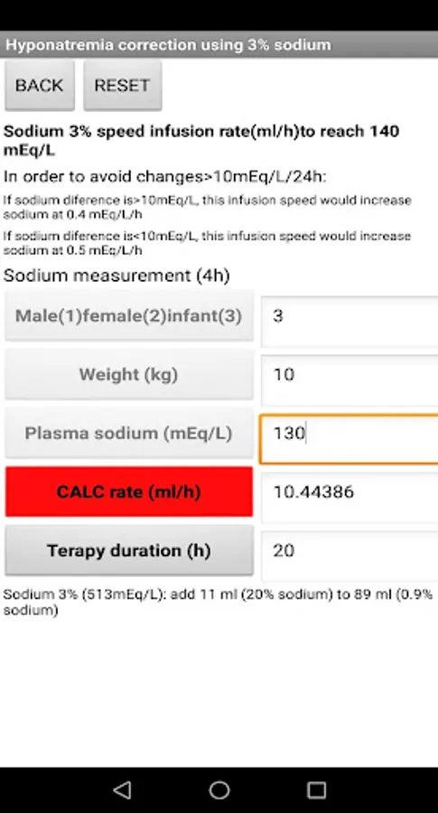 The application is a digital document to facilitate calculations for the management of dysnatremias.