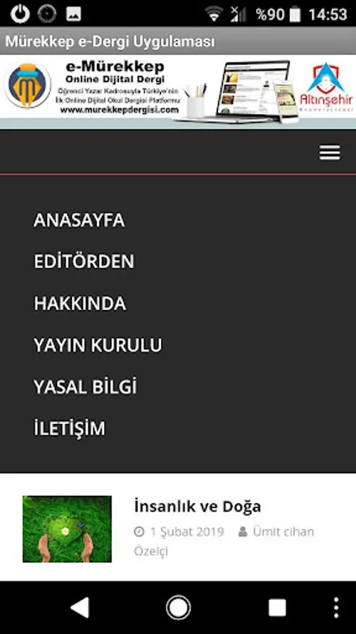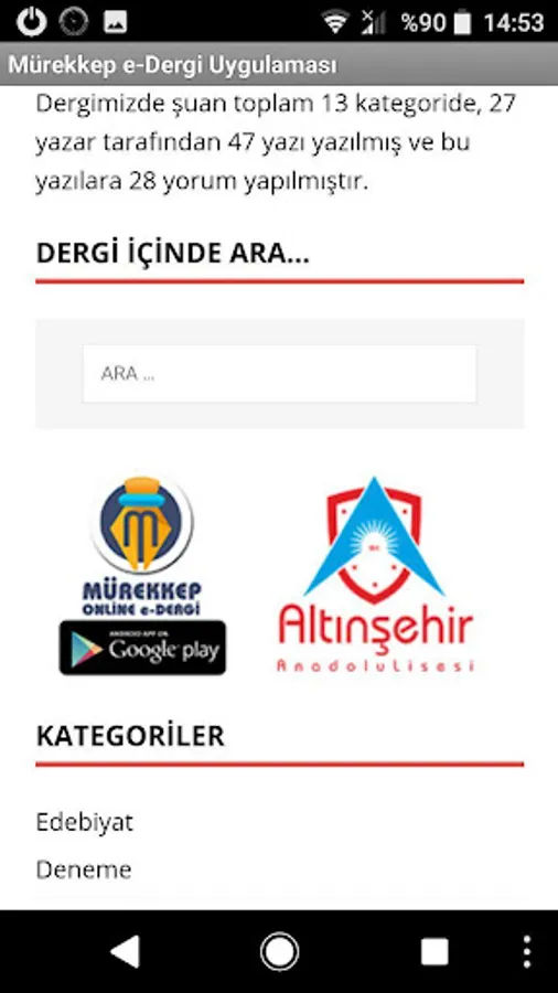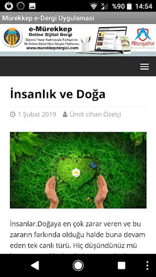 Prepared by students and teachers of Adıyaman Altınşehir Anatolian High School; is an online school magazine application called MÜREKKEP which contains cultural, artistic and scientific writings.