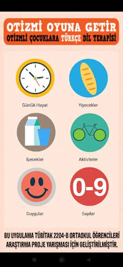 During the realization phase of the project, the "Digital Game-Based Learning Teaching Model" was preferred, and in this model, the game is used as a platform to transfer learning contents to the user. The design plan of the “Bring Autism to the Game” mobile game application; problem analysis, student characteristics, learning and the purpose of the game were planned according to 6 main language usage categories: "Daily Life", "Food", "Drinks", "Activities", "Emotions" and "Numbers". . Each main language usage category consists of 9 sub-language skill category activities. Each sub-language skill category consists of 3 imitation sentence activities, and there are a total of 162 imitation sentence activities in practice. Android, which is the most widely used mobile operating system, was preferred for the developed mobile game application.