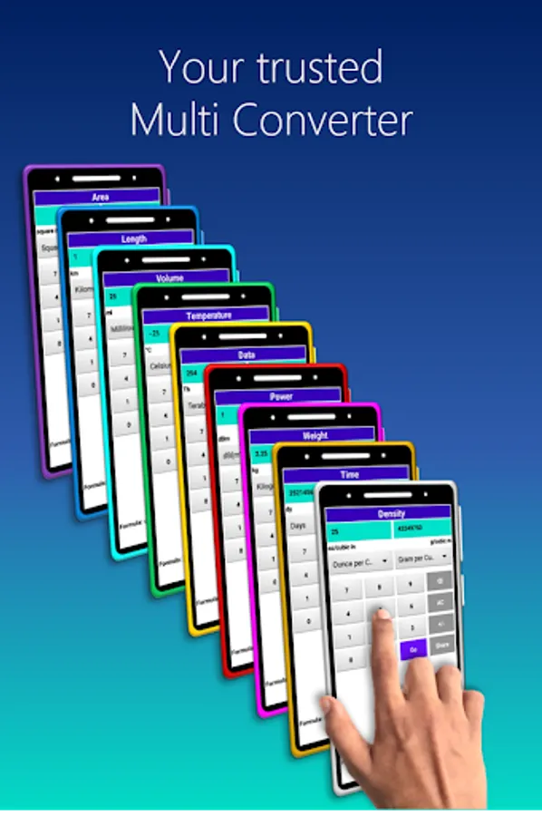Multi Converter is a unit converter for multiple unit conversions in a single application. This offline unit converter can do conversions between most of the units of length, area, volume, density, temperature, power, time, and data (Computer Memory). Commonly used unit conversions in international, metric, and imperial units are available in this unit converter. The conversion equation is displayed along with the result and can be easily copied or shared with other apps installed in your device. A basic calculator is also included. The app has a quite simple and intuitive user interface that is designed by considering all user groups and can be used with a wide verity of devices with small to big screens.