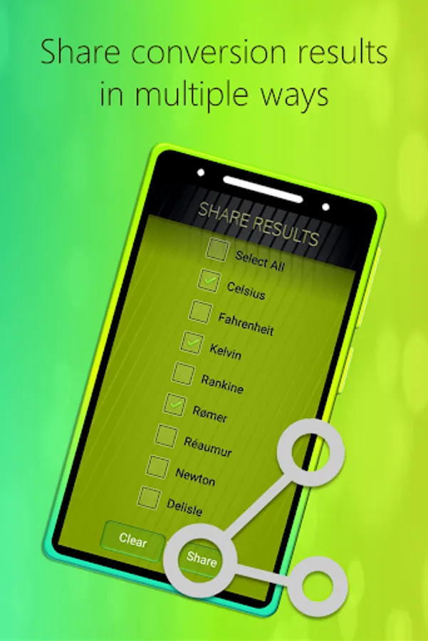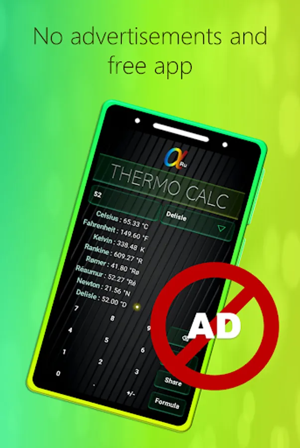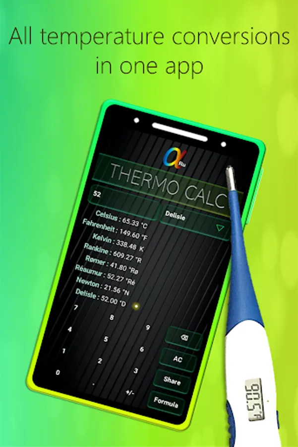 A simple, free and zero ad application for temperature conversions. This temperature calculator can simultaneously do real-time temperature conversions to all units of temperatures - Celsius, Delisle, Fahrenheit, Kelvin, Newton, Rankine, Reaumur, and Romer. App can handle positive and negative temperatures. Additionally, it checks for wrong inputs, and gives warning if the input temperature is less than absolute zero. With single click, one can copy or share the temperature conversion results to other applications on your mobile. This is a good tool for students and teachers to study temperature conversion calculations. Option to show conversion equation is an added value for students. App has simple and modern design which is optimized for small and big screen devices. Can easily calculate commonly used temperature units in weather data in different countries.